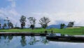 市内に5つのゴルフコースを持つ山口県山陽小野田市にあり、瀬戸内海を望む高台にある丘陵コースです。比較的フラットでバンカーも少ないためスコアはまとまりやすそうに思えるが、各所に谷や池が配置されており、攻略するには高い戦略性が求められる。チャンスホールは距離が比較的短く2オン狙いも可能な13番ホール(PAR5)。難ホールは池越えの3番ホール(PAR3)と、グリーン手前の大きなくぼみが特徴の6番ホール(PAR4)。